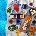 A szállás büfé reggelit szolgál fel. A medencébárban italok fogyaszthatók. A Kemer városi hotel szobáiban megszállva a vendégek olyan közeli étkezési lehetőségek közül választhatnak, mint a csaknem 5 percnyi sétára található Turkish Cafe vagy a 7 perces sétára lévő Has Restaurant.
